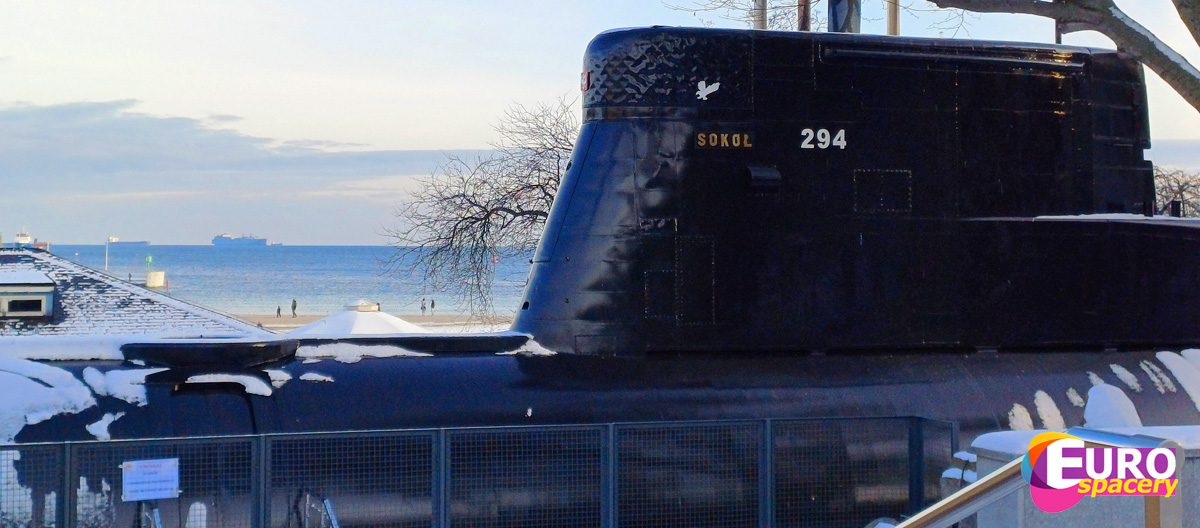 ORP Sokół (294) – okręt podwodny Marynarki Wojennej typu Kobben jest widoczny z plaży miejskiej. Tu: ujęcie z wewnętrznego terenu muzeum.