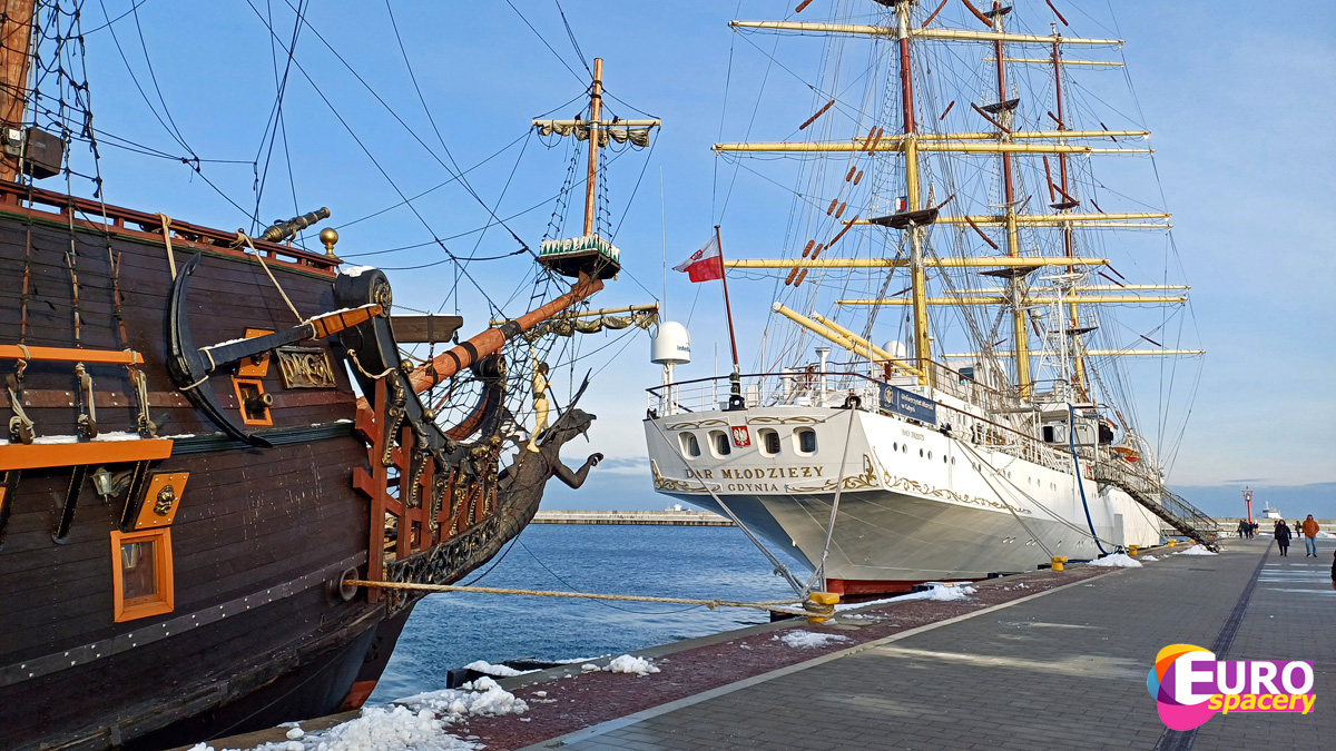 Dar Młodzieży oraz niewidoczny na zdjęciu ORP Błyskawica to statki, które można zwiedzać, ale niestety, podczas naszego pobytu w Gdyni obydwa muzea były nieczynne