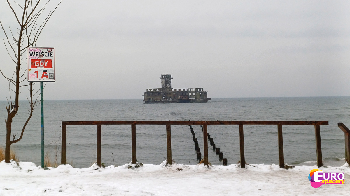 Stamtąd wystarczy kilka minut spaceru, by znaleźć się na plaży, wprost naprzeciwko wyłaniającej się z morza największej atrakcji tego miejsca. Mowa o torpedowni, której ruiny straszą (lub jak kto woli – zachwycają) około 300 m od brzegu. Z wody wystają przęsła prowadzącego do niej dawnego pomostu.