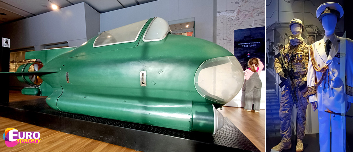 Jednym z najcenniejszych eksponatów jest francuska mina morska SM 5, używana przez polskie okręty podwodne podczas kampanii wrześniowej. Jest też salka z karabinem, gdzie można wypróbować swoje umiejętności strzeleckie w grze, celując do pojawiających się na ekranie samolotów.